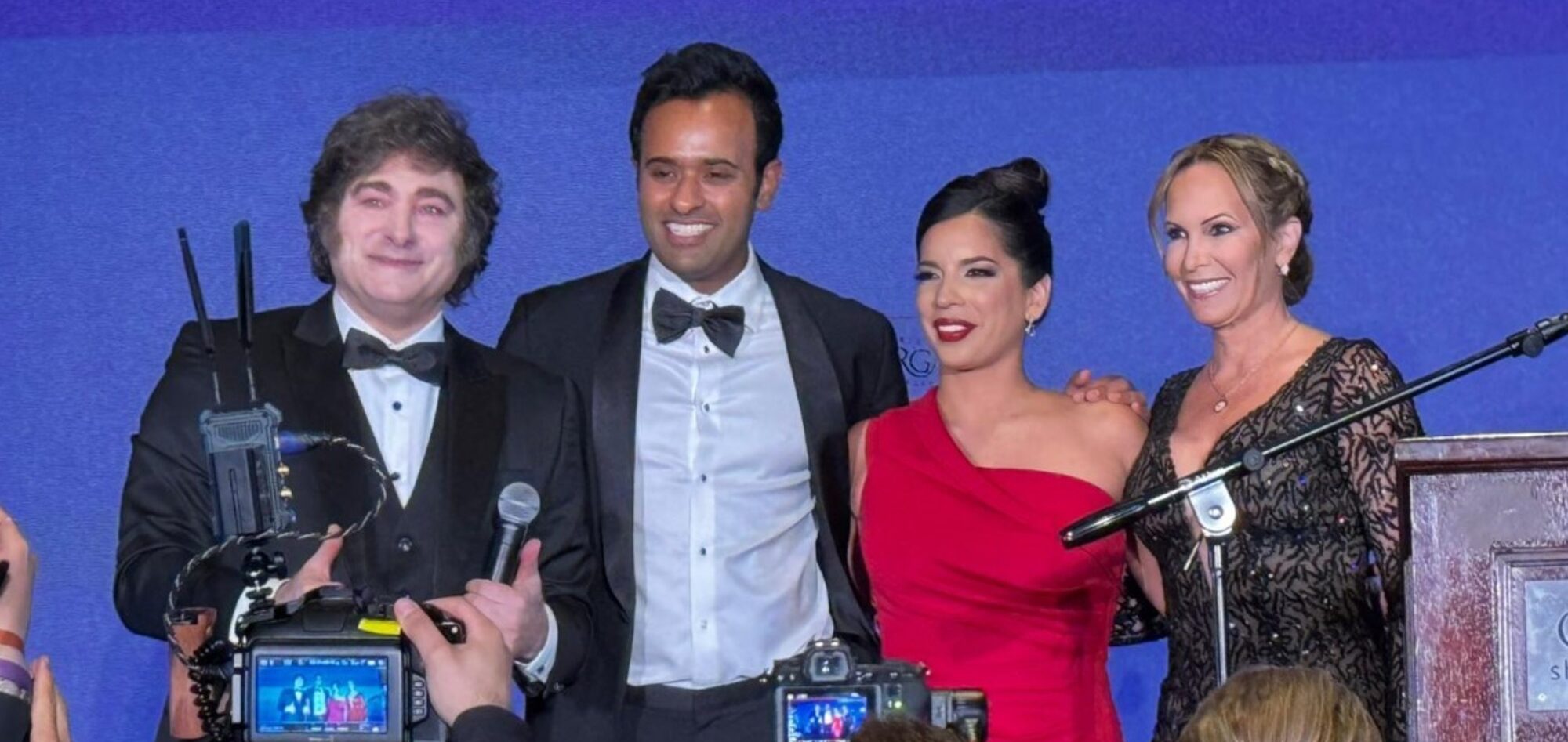 Tras la gala, Milei se reunió con Eduardo Bolsonaro, hijo del exmandatario brasileño Jair Bolsonaro, quien lo recibió con elogios: “La segunda persona más importante del mundo”, refiriéndose a Karina Milei, a quien ubicó justo después del presidente electo republicano, Donald Trump.